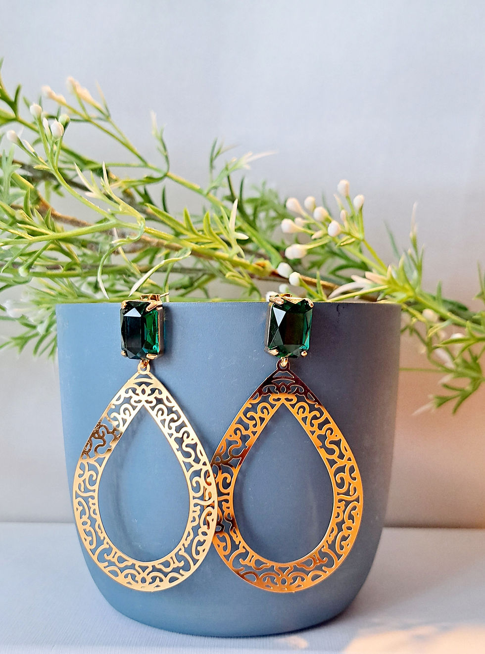 Hängeohrringe mit Cabochonstecker und Glastropfenanhänger